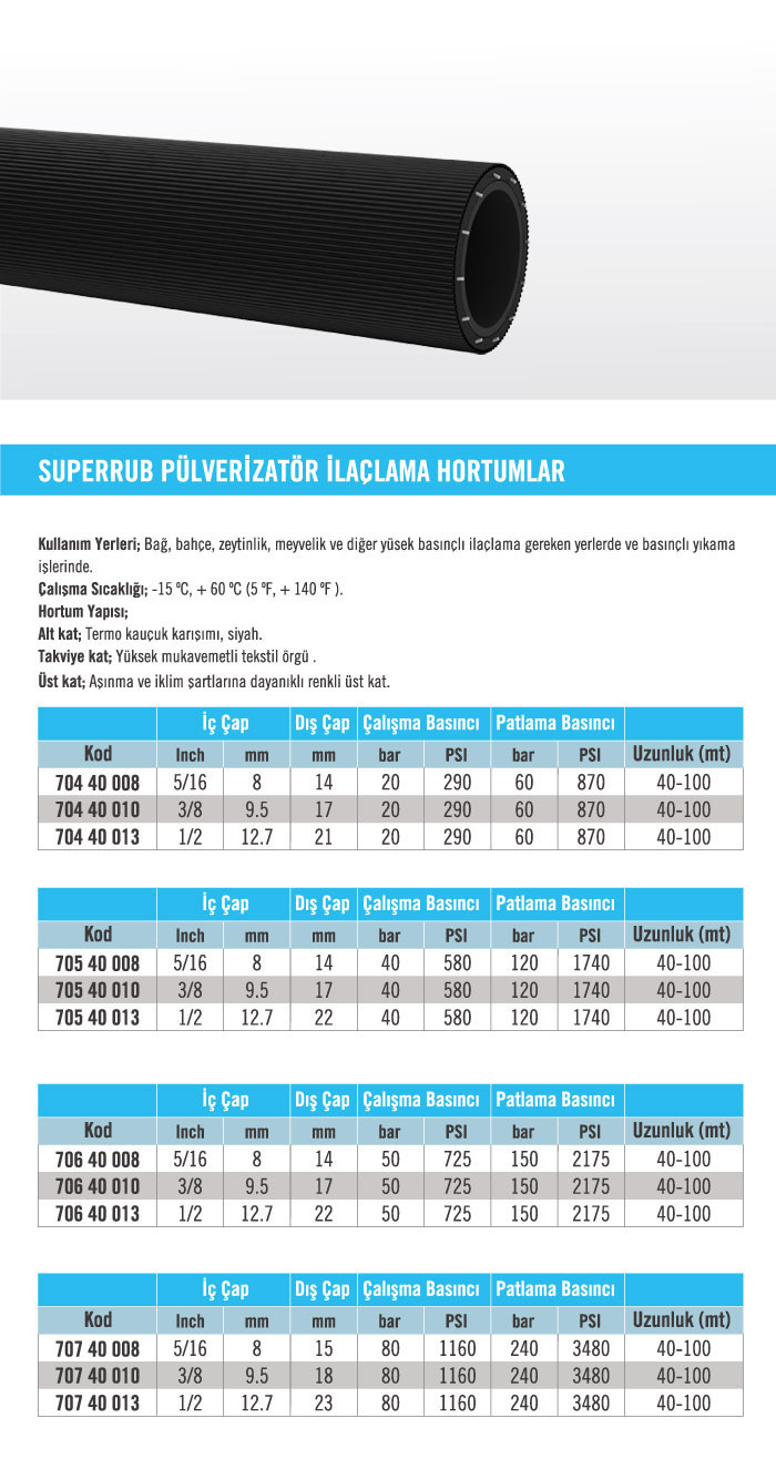 Bezli Kauçuk Hortum Kullanım Tablosu