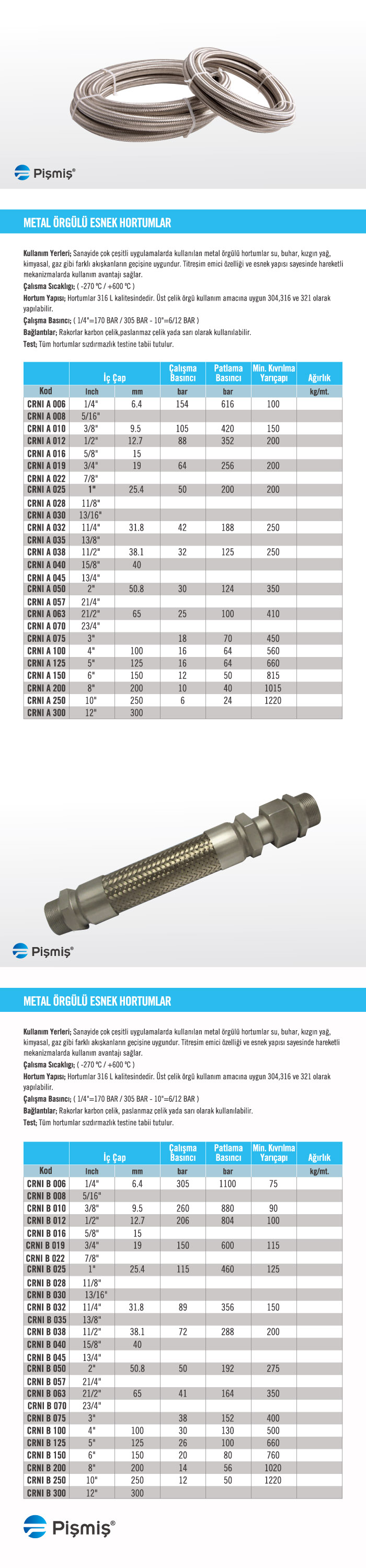 Bezli Kauçuk Hortum Dayanıklılık Tablosu