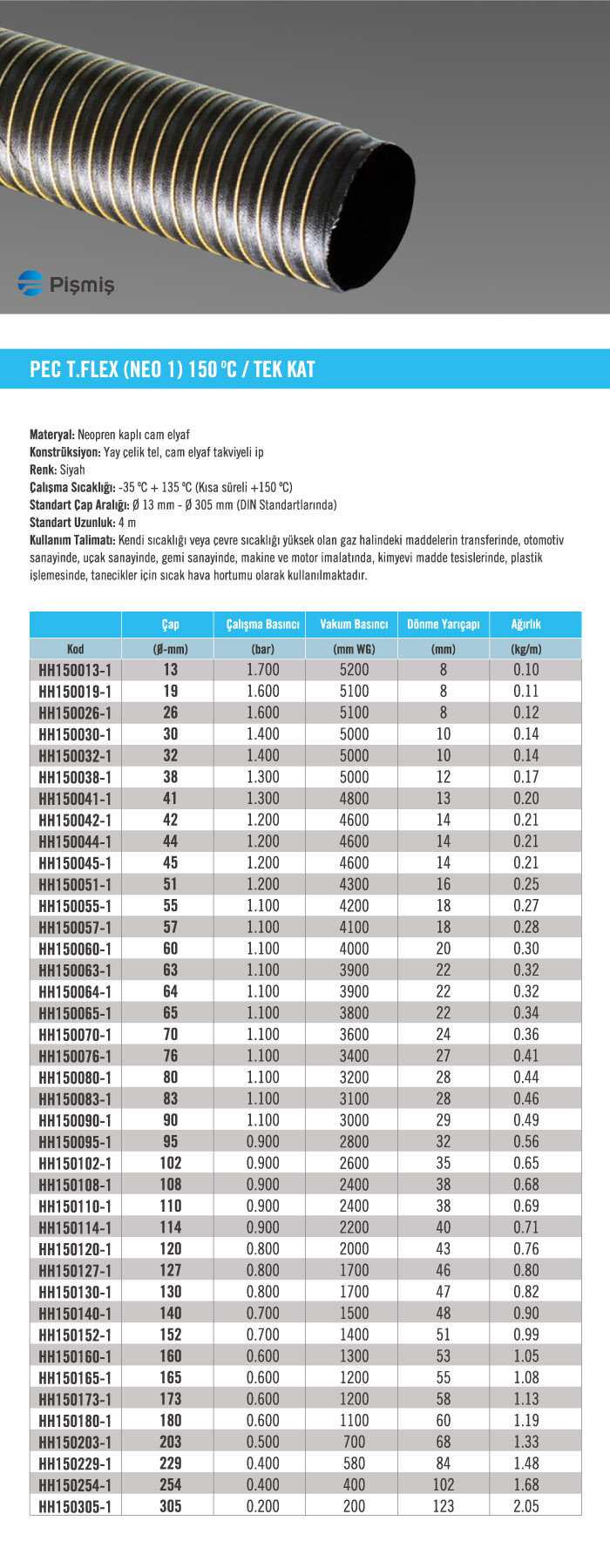 Bezli Kauçuk Hortum Dayanıklılık Tablosu
